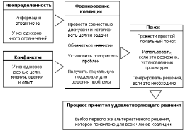 Второй причиной создания коалиции является то, что каждый из менеджеров, конечно же, стремится быть рациональным, но, тем не менее, ему не избежать ограничений, связанных с факторами, описанными выше. Менеджеры не обладают достаточным временем, средствами или интеллектуальными возможностями, чтобы идентифицировать все показатели и переварить всю информацию, относящуюся к решаемой проблеме. Эти ограничения и склоняют менеджеров к созданию коалиций. Менеджеры беседуют друг с другом и обмениваются точками зрения для сбора информации и снижения неопределенности. Они консультируются у тех, кто обладает надлежащей информацией и заинтересован в результатах решения проблемы. Создание коалиций способствует выработке управленческого решения, которое поддерживается всеми заинтересованными сторонами.